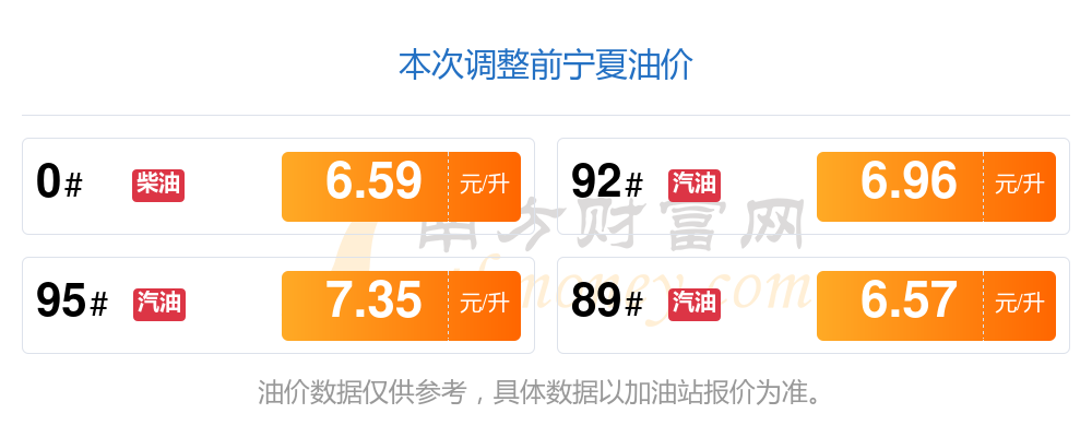 油價(jià)數(shù)據(jù)僅供參考,請(qǐng)以您所在地區(qū)的加油站報(bào)價(jià)為準(zhǔn)。南方財(cái)富網(wǎng)發(fā)布此信息的目的在于傳播更多信息,對(duì)使用該油價(jià)信息所導(dǎo)致的結(jié)果概不承擔(dān)任何責(zé)任。