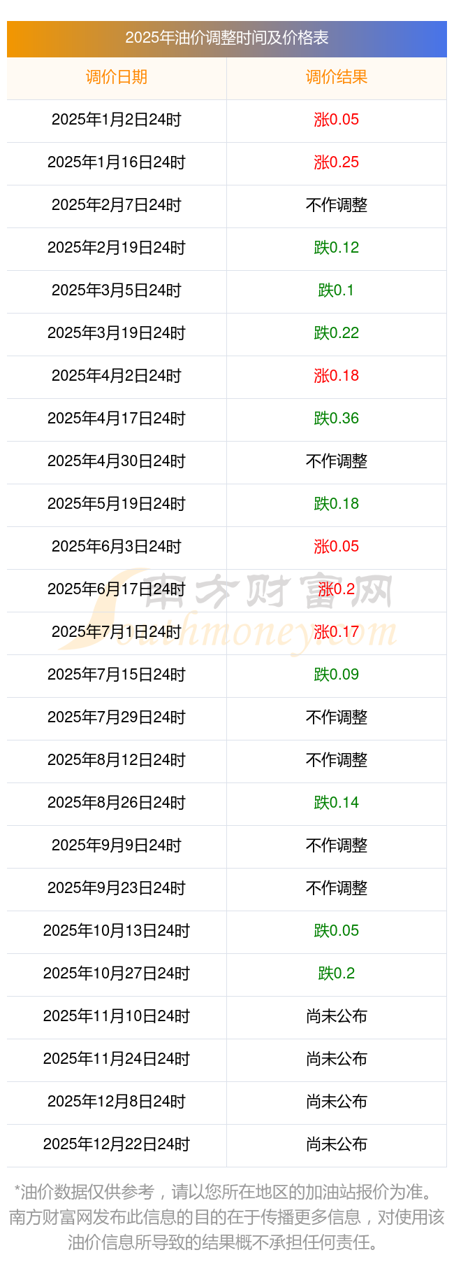 2025年11月8日全國各地汽油價格調(diào)整時間及價格一覽表