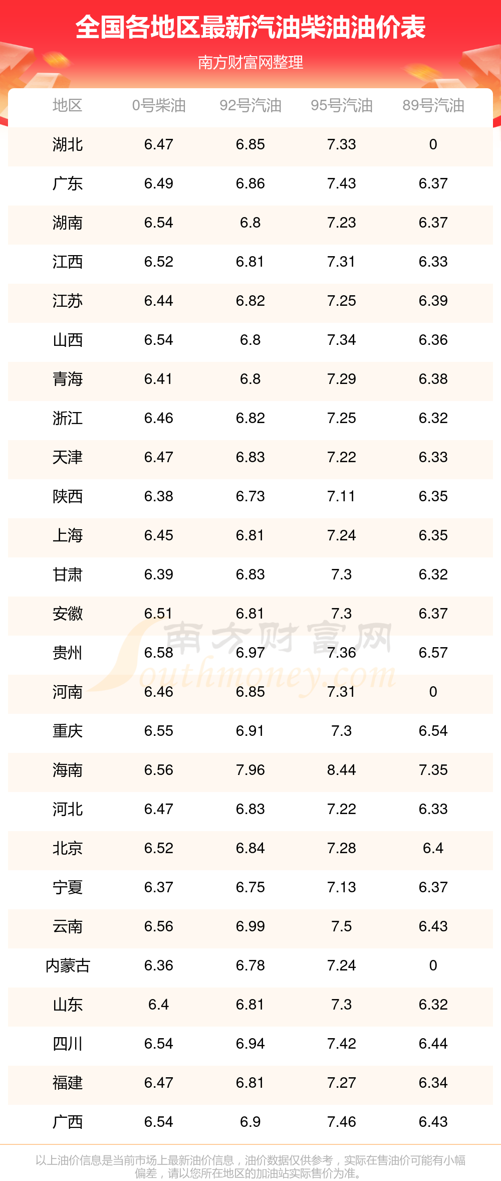 2025年11月8日全國(guó)油價(jià)調(diào)整及最新汽油價(jià)格表