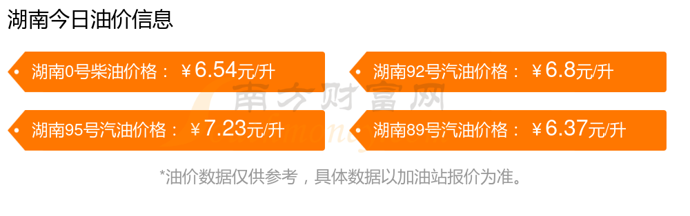 11月8日湖南汽油、柴油每升的價格具體為:本輪油價調(diào)整時間為10月28日,92號汽油是6.8元,降了0.21元,降幅達3.01%;95號汽油是7.23元,降了0.22元,降幅達3.01%;89號汽油為6.37元,降了0.2元,降幅達3.01%;0號柴油為6.54元,降了0.22元,降幅達3.26%。