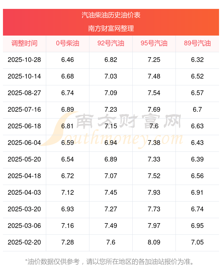 11月8日浙江麗水95號汽油的價格是10月28日調(diào)整后的價格,具體為7.25元/升,對比上次調(diào)整時間10月14日的油價7.48元每升,下調(diào)了0.23元,下調(diào)幅達3.075%。下一輪油價調(diào)整時間11月10日24時,距離現(xiàn)在還有2.63天。