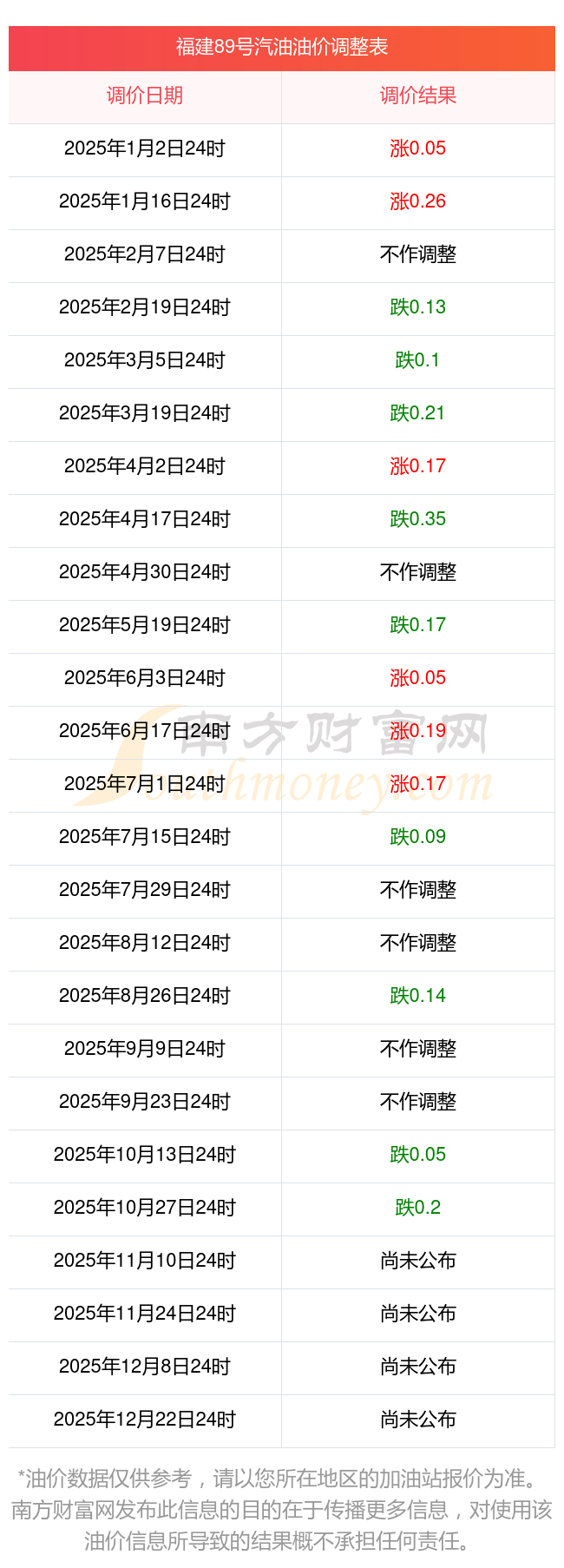 福建廈門汽油柴油價格調(diào)整一覽表