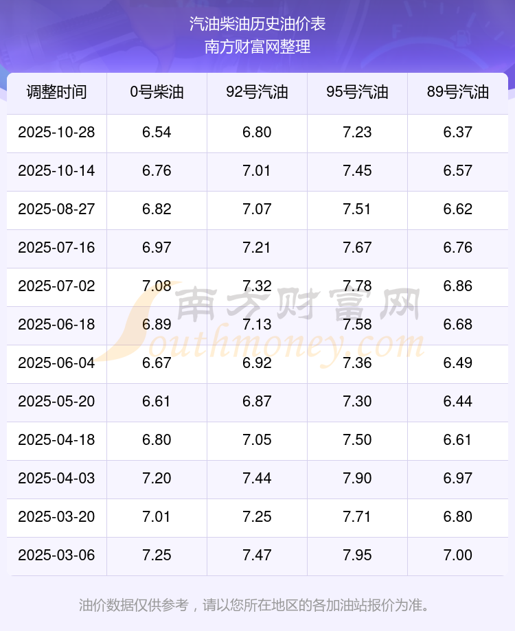 2025年油價(jià)調(diào)價(jià)窗口日期表: