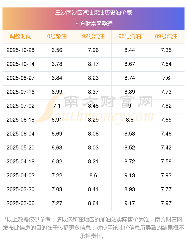 2025年三沙南沙區(qū)油價(jià)調(diào)整時(shí)間表