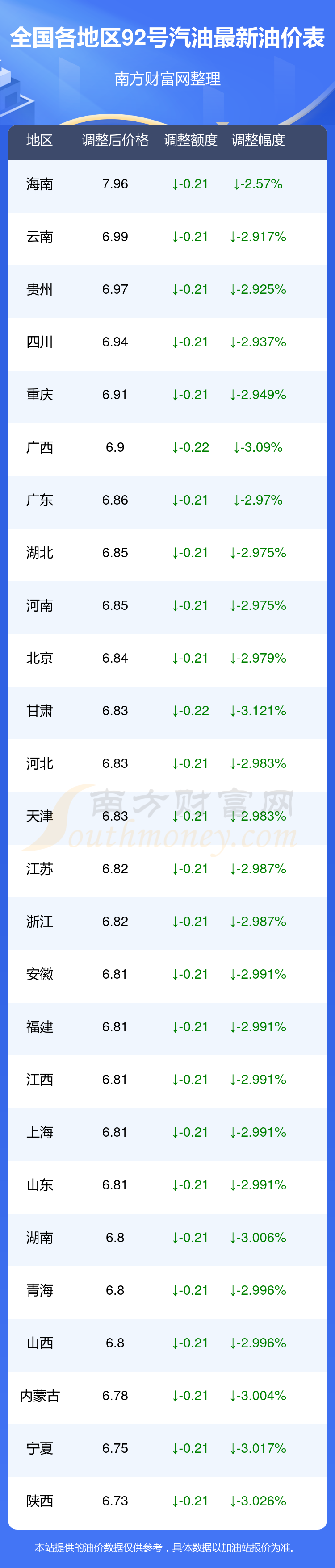 油價數(shù)據(jù)僅供參考,請以您所在地區(qū)的各加油站報價為準。