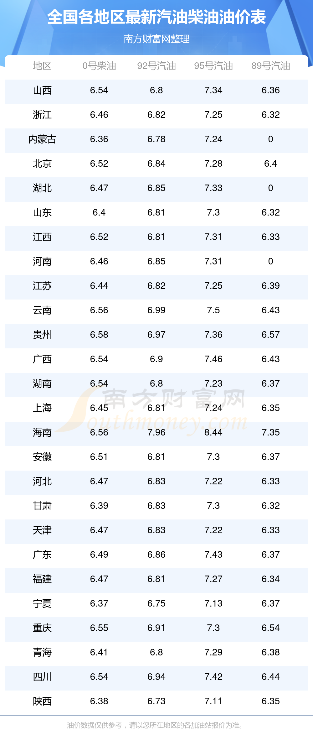 本站提供的油價數(shù)據(jù)僅供參考,具體數(shù)據(jù)以加油站報價為準。