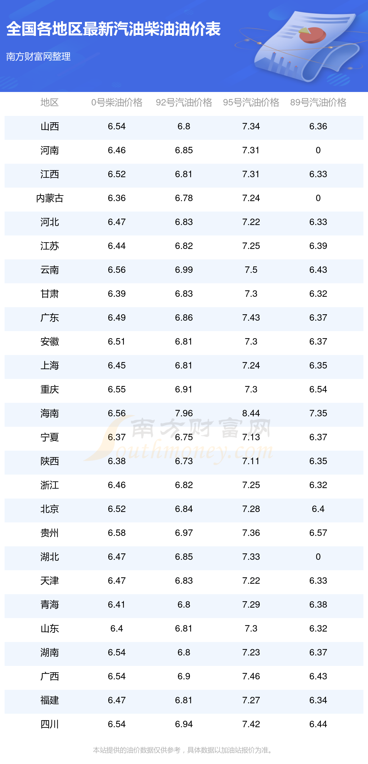 2025年11月8日全國(guó)油價(jià)調(diào)整及最新汽油價(jià)格表