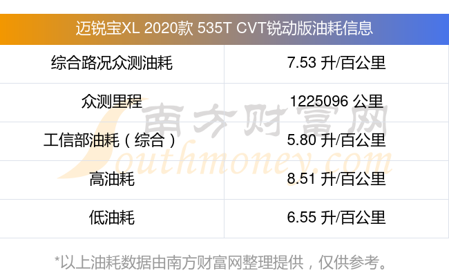 根據(jù)多位車主實(shí)測(cè)得出數(shù)據(jù),該車型低油耗為6.55升/百公里,高油耗為8.51升/百公里,綜合路況眾測(cè)油耗為7.53升/百公里,工信部綜合油耗為5.80升/百公里。