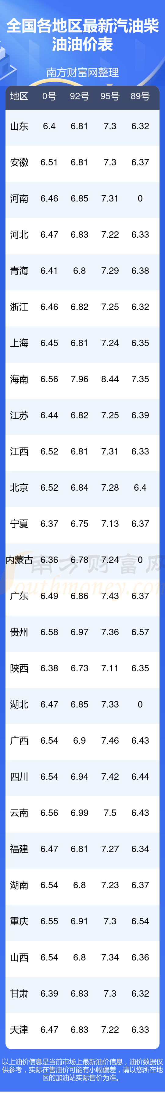 本站提供的油價(jià)數(shù)據(jù)僅供參考,具體數(shù)據(jù)以加油站報(bào)價(jià)為準(zhǔn)。