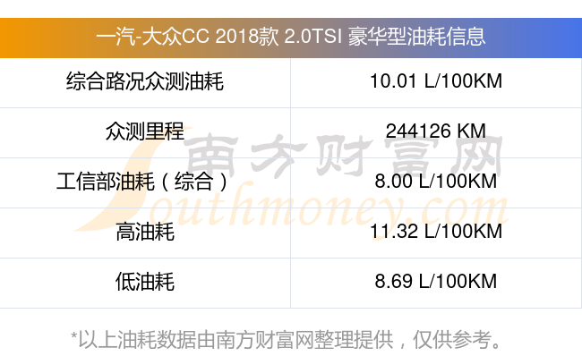 根據(jù)多位車主實(shí)測(cè)得出數(shù)據(jù),該車型低油耗為8.69L/100km,高油耗為11.32L/100km,綜合路況眾測(cè)油耗為10.01L/100km,工信部綜合油耗為8.00L/100km。