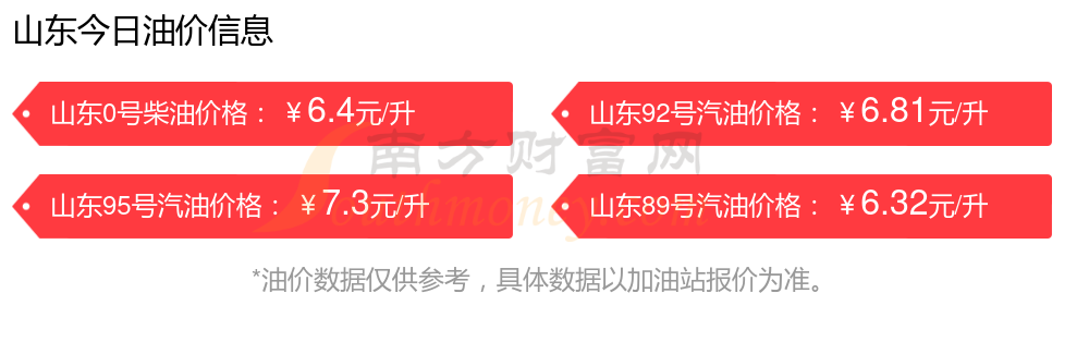 11月8日山東汽油、柴油每升最新價格多少錢一升?具體為:92號汽油6.81元,下跌了0.21元;95號汽油7.3元,下跌了0.23元;89號汽油6.32元,下跌了0.2;0號柴油為6.4元,下跌了0.22元,本次的調(diào)整時間是10月28日。