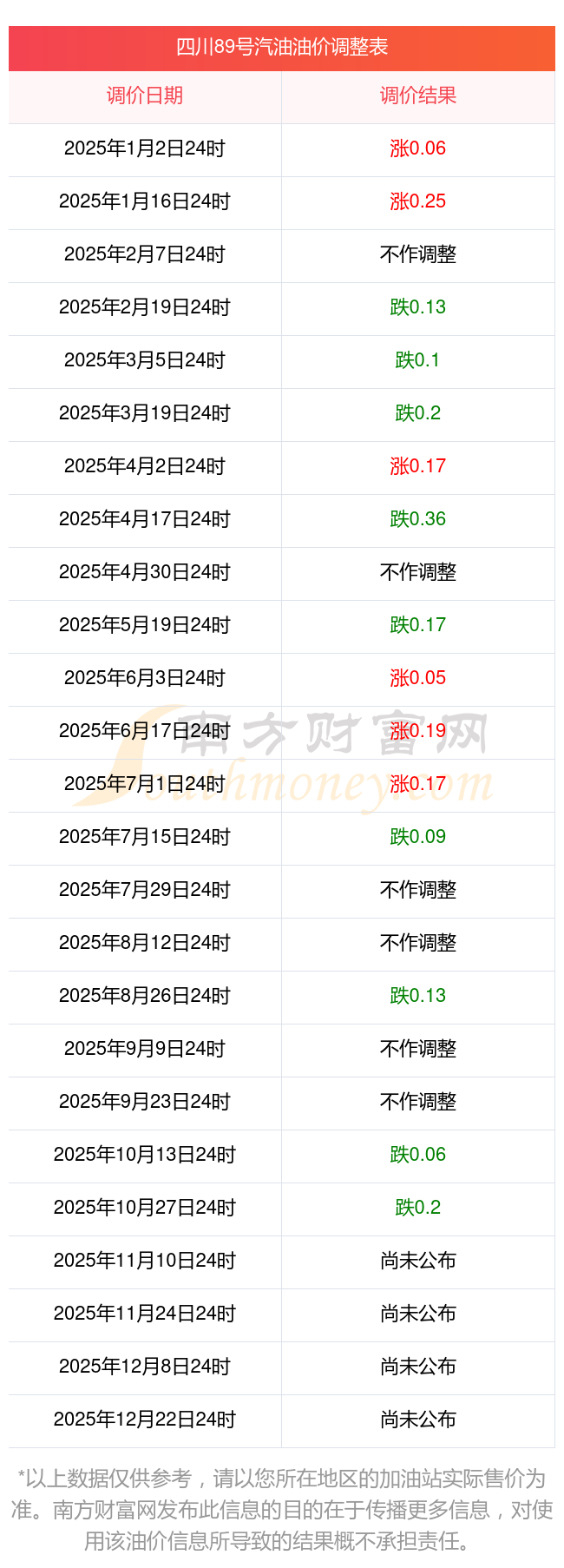 2025年油價(jià)調(diào)整時(shí)間及價(jià)格一覽表