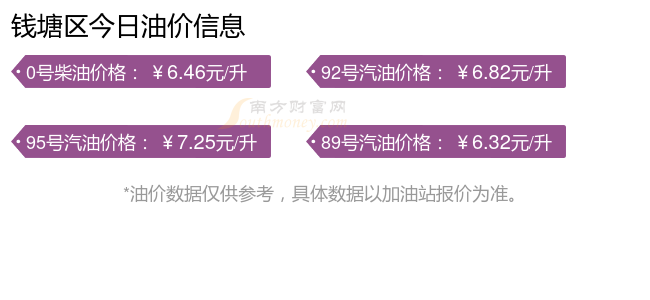 錢(qián)塘區(qū)汽油、柴油11月8日每升的價(jià)格是多少?具體為:92號(hào)汽油為6.82元,下調(diào)了0.21元;95號(hào)汽油為7.25元,下調(diào)了0.23元;89號(hào)汽油為6.32元,下調(diào)了0.2元;0號(hào)柴油為6.46元,下調(diào)了0.22元,本輪油價(jià)的調(diào)整時(shí)間為10月28日。