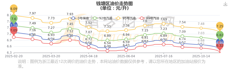 11月8日錢(qián)塘區(qū)0號(hào)柴油歷史油價(jià)走勢(shì)圖