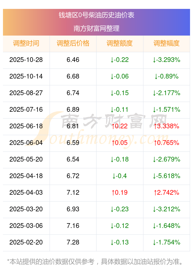 11月8日錢(qián)塘區(qū)0號(hào)柴油歷史油價(jià)一覽表