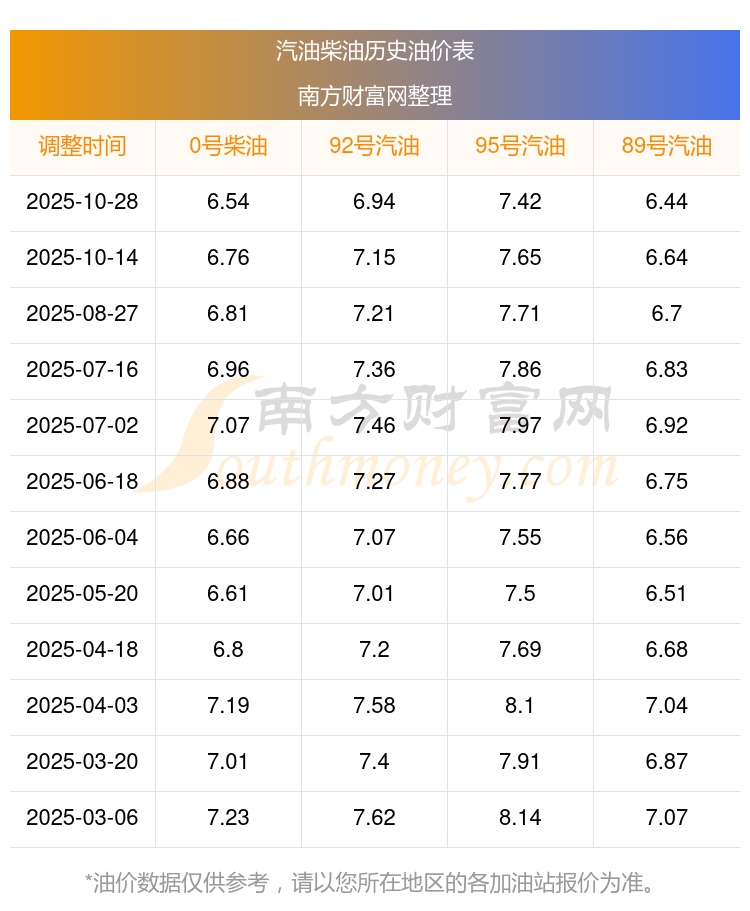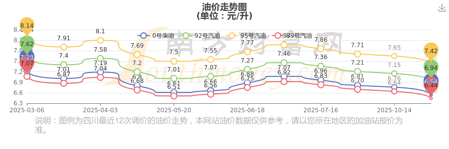 11月8日甘孜95號(hào)汽油的價(jià)格為10月28日油價(jià)調(diào)整后的價(jià)格,每升7.42元,對(duì)比上一輪油價(jià)調(diào)整時(shí)間10月14日的價(jià)格7.65元每升,下調(diào)了0.23元,下調(diào)幅達(dá)3.007%。下一輪油價(jià)調(diào)整時(shí)間11月10日24時(shí),距離現(xiàn)在還有2.54天。