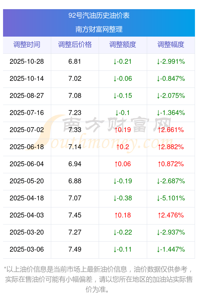 汽油、柴油11月8日價(jià)格多少錢一升?具體為:0號(hào)柴油為6.47元,下調(diào)了0.22元;95號(hào)汽油為7.27元;92號(hào)汽油為6.81元;89號(hào)汽油為6.34元,調(diào)整時(shí)間為10月28日。下一輪油價(jià)調(diào)整時(shí)間11月10日24時(shí),距離現(xiàn)在還有2.52天。