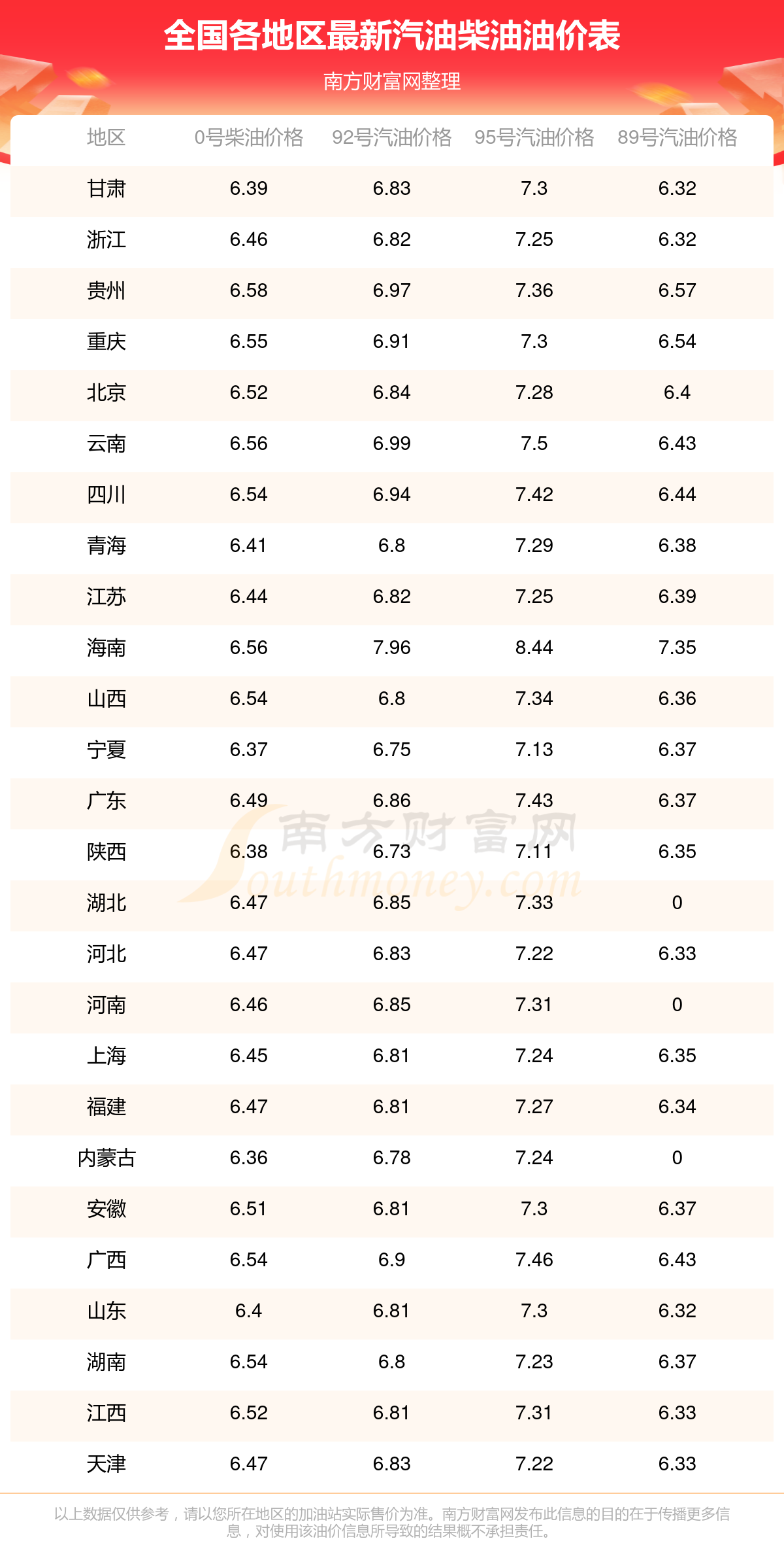 2025年全國(guó)各地區(qū)汽油價(jià)格表