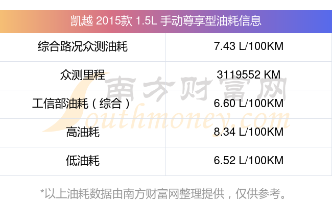 根據(jù)車主實測數(shù)據(jù),該車型低油耗為6.52升每百公里,高油耗為8.34升每百公里,綜合路況眾測油耗為7.43升每百公里,工信部綜合油耗為6.60升每百公里。