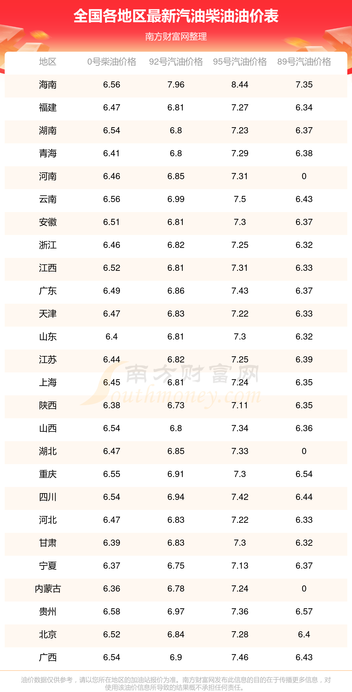 以上油價(jià)信息是當(dāng)前市場(chǎng)上最新油價(jià)信息,油價(jià)數(shù)據(jù)僅供參考,實(shí)際在售油價(jià)可能有小幅偏差,請(qǐng)以您所在地區(qū)的加油站實(shí)際售價(jià)為準(zhǔn)。