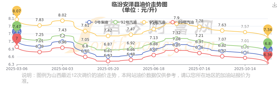 11月8日臨汾安澤縣92號(hào)汽油歷史油價(jià)走勢圖