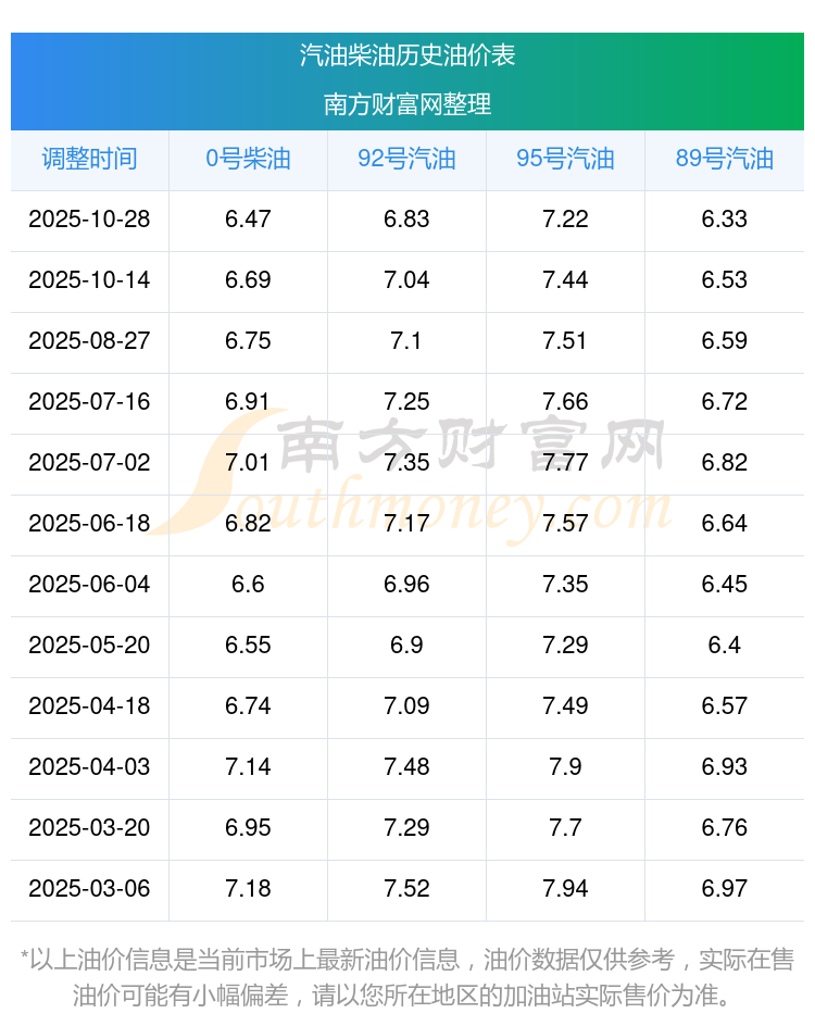 11月8日承德92號汽油的價格為6.83元/升,這是10月28日調(diào)整后的價格,對比上輪調(diào)整下調(diào)了0.21元,下調(diào)2.983%。下一輪油價調(diào)整時間11月10日24時,距離現(xiàn)在還有2.47天。