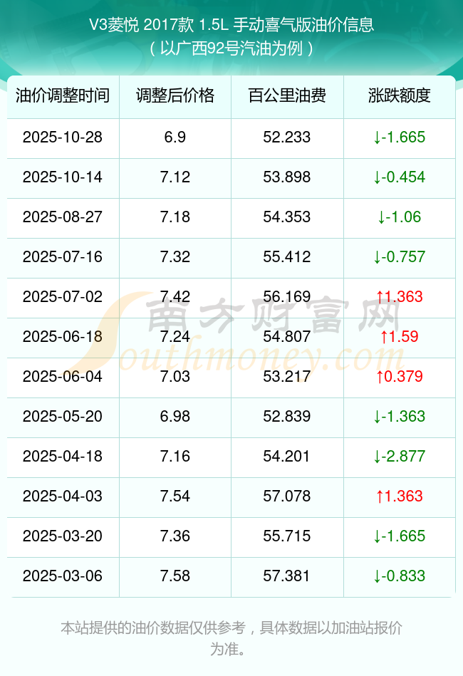 按10月28日92號(hào)汽油最新調(diào)整價(jià)格6.9元每升來計(jì)算(以廣西為例),該車型百公里平均油費(fèi)為52.233元,按上一輪10月14日調(diào)整價(jià)格7.12元每升來計(jì)算,百公里平均油費(fèi)為53.898元,對(duì)比上一輪少花1.665元,下一輪油價(jià)調(diào)整時(shí)間為11月10日24時(shí)。