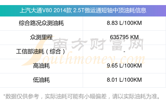 根據(jù)多位車主實(shí)測(cè)得出數(shù)據(jù),該車型低油耗為8.01L/100km,高油耗為9.65L/100km,綜合路況眾測(cè)油耗為8.83L/100km,工信部綜合油耗為-L/100km。