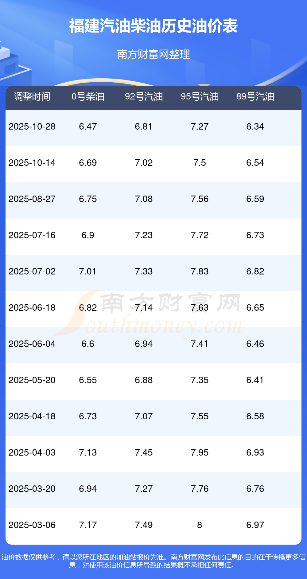 (11月8日)92、95號(hào)汽油價(jià)格一覽表
