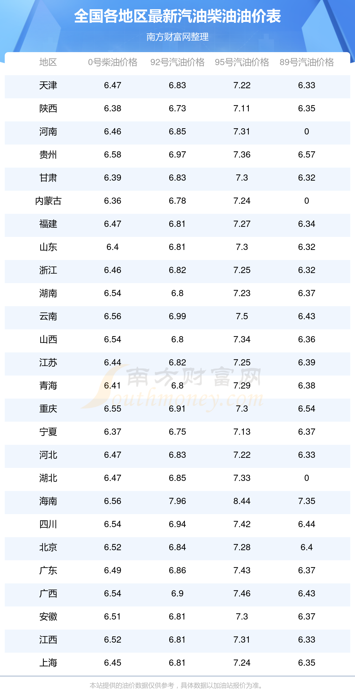 2025年唐山玉田縣11月8日汽油價(jià)格一覽表