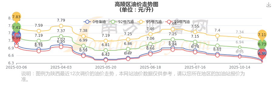 11月8日高陵區(qū)0號(hào)柴油歷史油價(jià)走勢(shì)圖