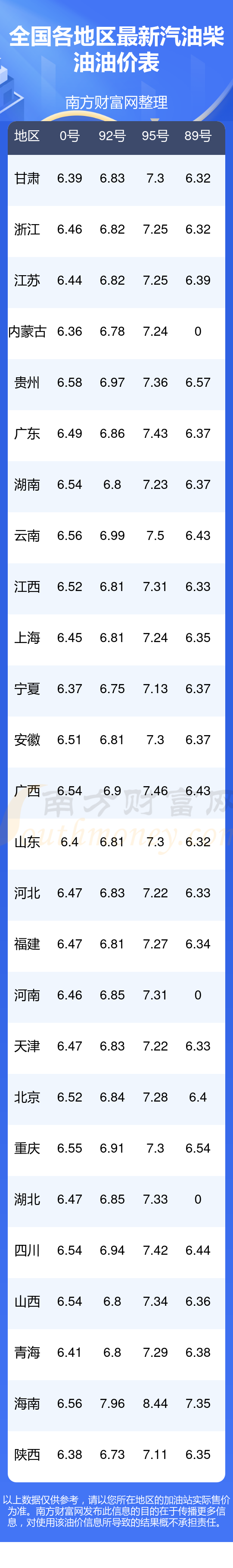 11月8日,全國92號汽油的最新價格是10月28日油價調整后的價格,具體為:平均價格7元/升,最低的是陜西,價格6.73元/升,最高的是海南,價格7.96元/升。,下一輪油價調整時間11月10日24時,距離現(xiàn)在還有2.42天。