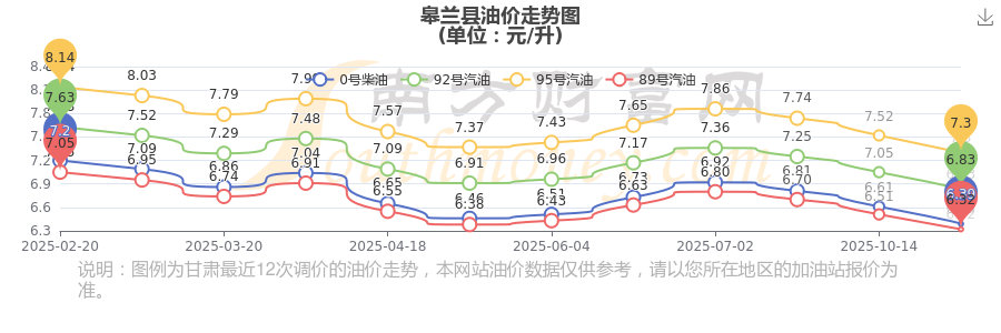 皋蘭縣11月8日0號柴油歷史油價調(diào)整走勢圖