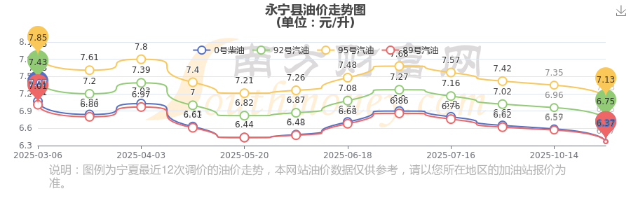 永寧縣11月8日95號汽油歷史油價調(diào)整走勢圖