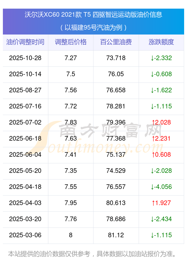 依照10月28日95號(hào)汽油最新調(diào)整價(jià)格7.27元/升來(lái)計(jì)算(以福建為例),該車型百公里的平均油費(fèi)是73.718元,依照上一輪10月14日調(diào)整價(jià)格7.5元/升來(lái)計(jì)算,百公里的平均油費(fèi)是76.05元,對(duì)比上一輪少花2.332元,下一輪的油價(jià)調(diào)整時(shí)間11月10日24時(shí)。