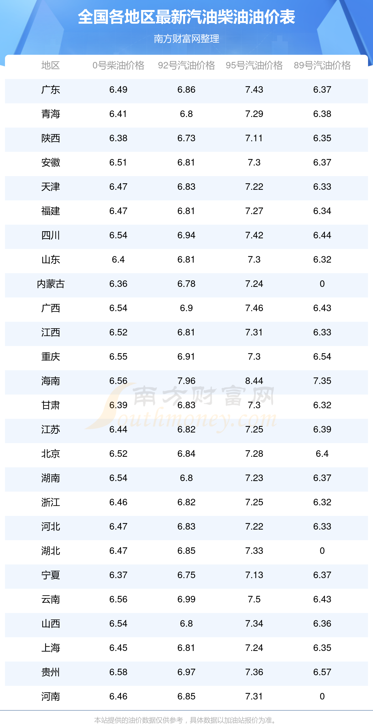 全國0號柴油11月8日最新平均價格為6元/升(根據(jù)10月28日調整后的價格計算)。其中,全國0號柴油最低為內蒙古,價格為6.36元/升;0號柴油最高為貴州,價格為6.58元/升。下一輪油價調整時間11月10日24時,距離現(xiàn)在還有2.39天。