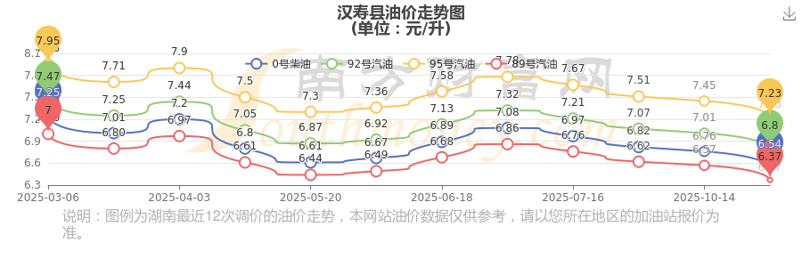 漢壽縣11月8日0號柴油歷史油價調(diào)整走勢圖