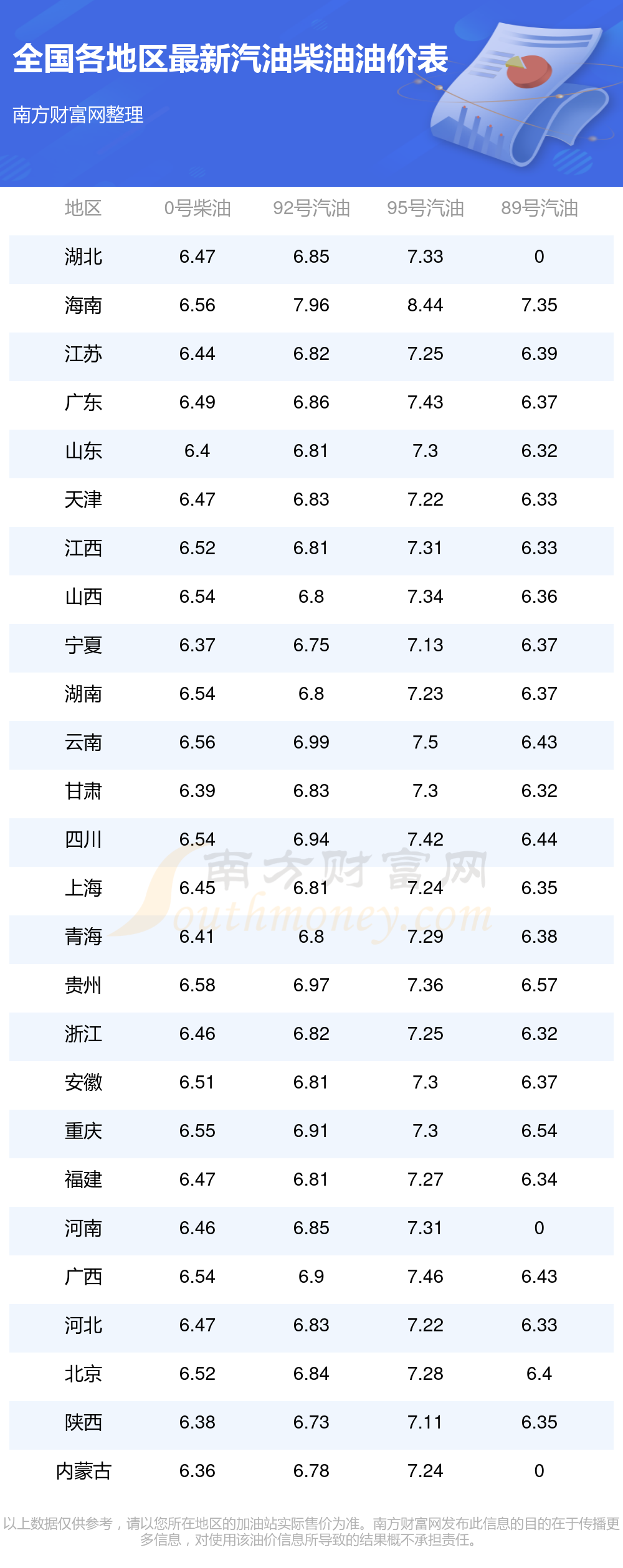 2025年11月8日全國各地汽油價(jià)格一覽表