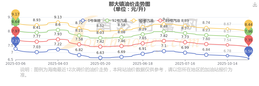 那大鎮(zhèn)11月8日92號(hào)汽油歷史油價(jià)調(diào)整走勢(shì)圖