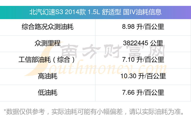 根據(jù)車主實測數(shù)據(jù),該車型低油耗為7.66升每百公里,高油耗為10.30升每百公里,綜合路況眾測油耗為8.98升每百公里,工信部綜合油耗為7.10升每百公里。