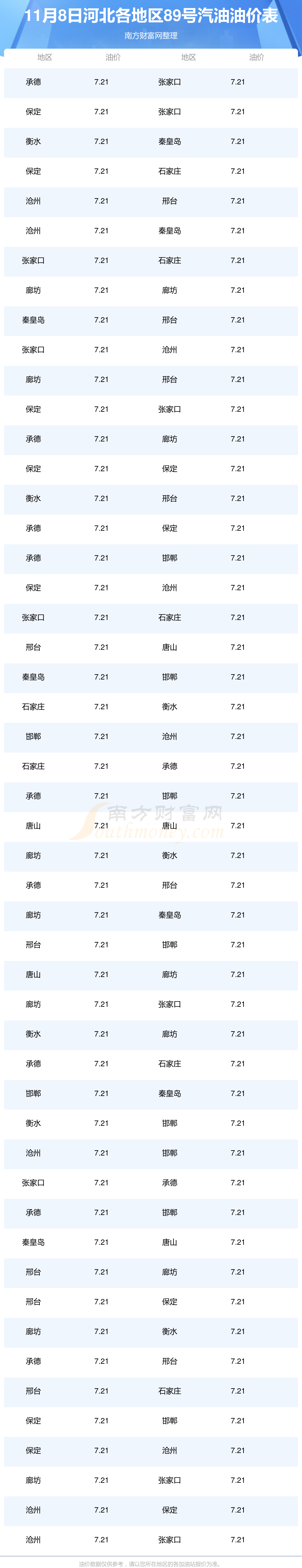 2025年11月8日河北89號(hào)汽油最新價(jià)格一覽表