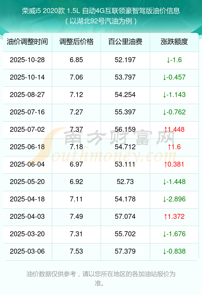 依照10月28日92號汽油最新調(diào)整價格6.85元/升來計(jì)算(以湖北為例),該車型百公里的平均油費(fèi)是52.197元,依照上一輪10月14日調(diào)整價格7.06元/升來計(jì)算,百公里的平均油費(fèi)是53.797元,對比上一輪少花1.6元,下一輪的油價調(diào)整時間11月10日24時。
