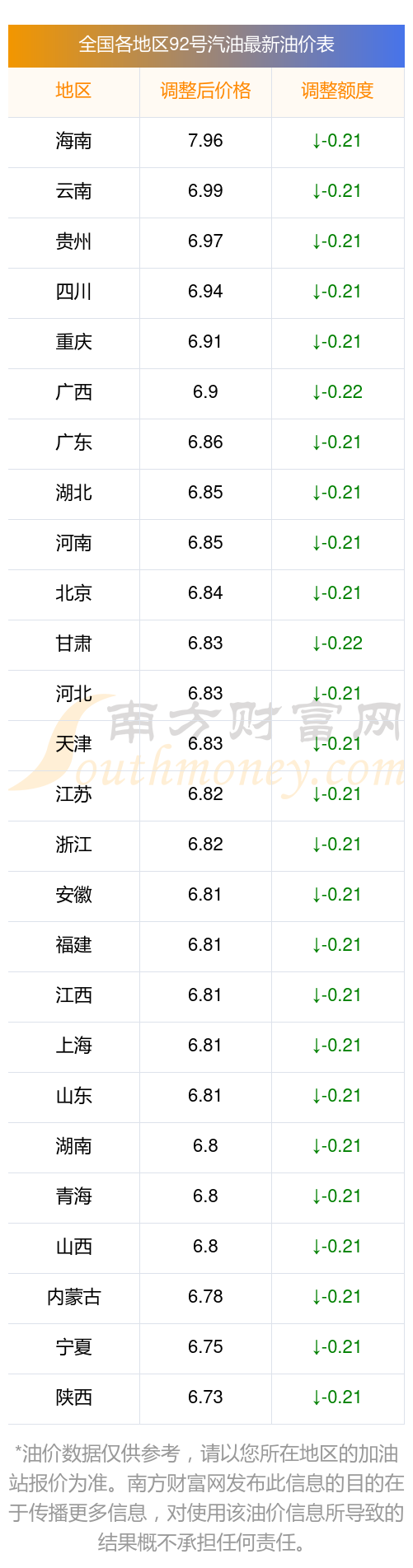 附:全國(guó)各地區(qū)92號(hào)汽油油價(jià)一覽表
