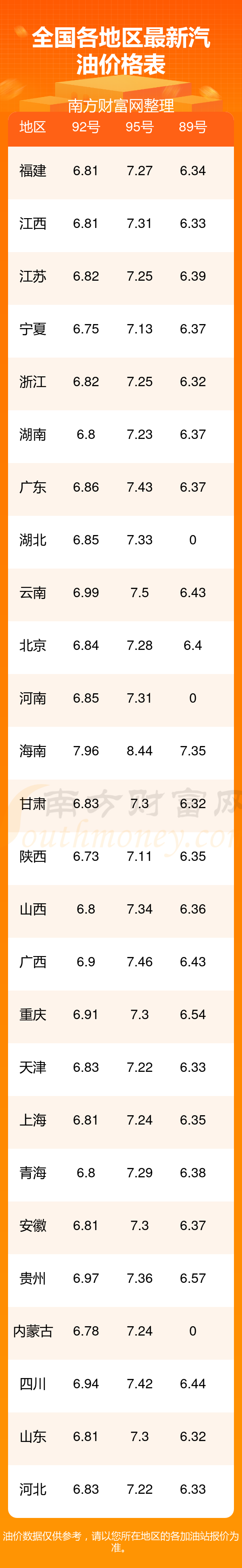 2025年11月8日全國各地油價調(diào)整時間表