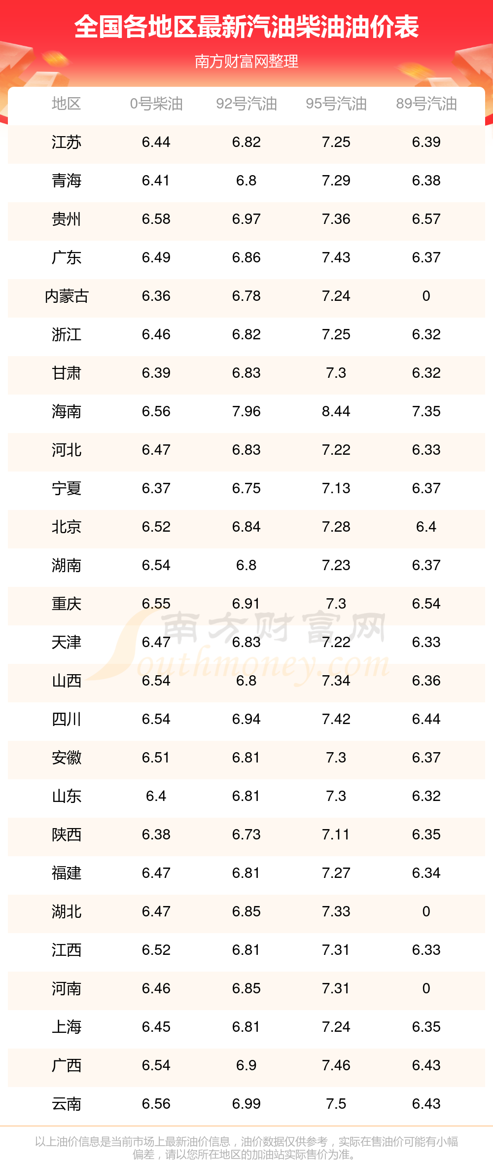 2025年11月8日全國油價調(diào)整及最新汽油價格表