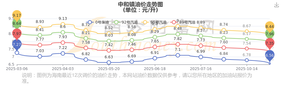 中和鎮(zhèn)11月8日0號柴油歷史油價調整走勢圖