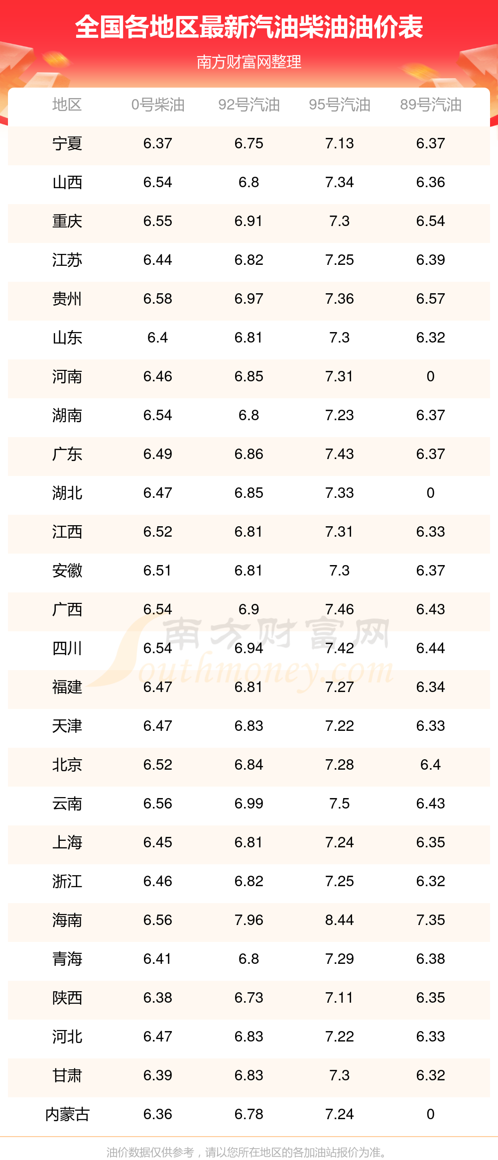 2025年11月8日全國油價調(diào)整及最新汽油價格表