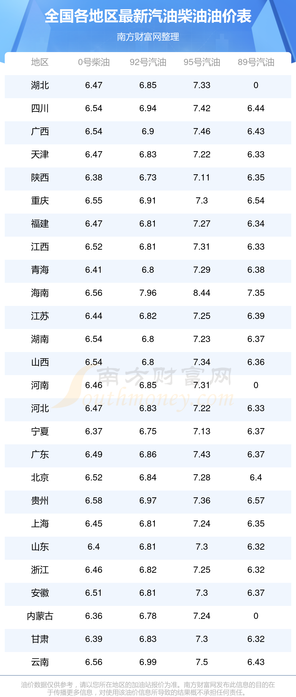 本站提供的油價數(shù)據(jù)僅供參考,具體數(shù)據(jù)以加油站報價為準(zhǔn)。