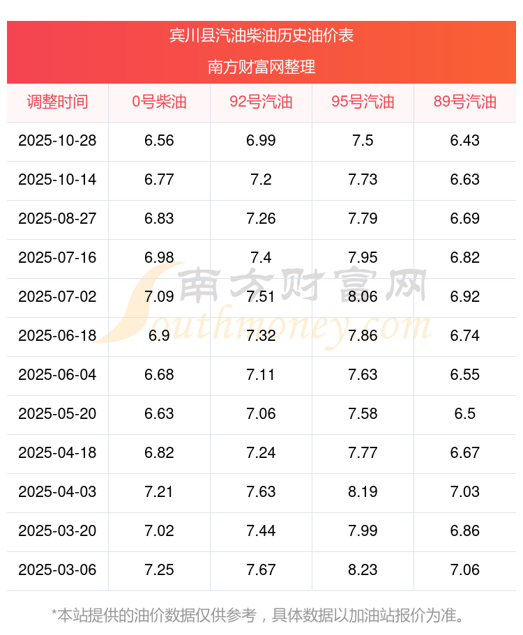 2025年賓川縣油價(jià)調(diào)整時(shí)間表