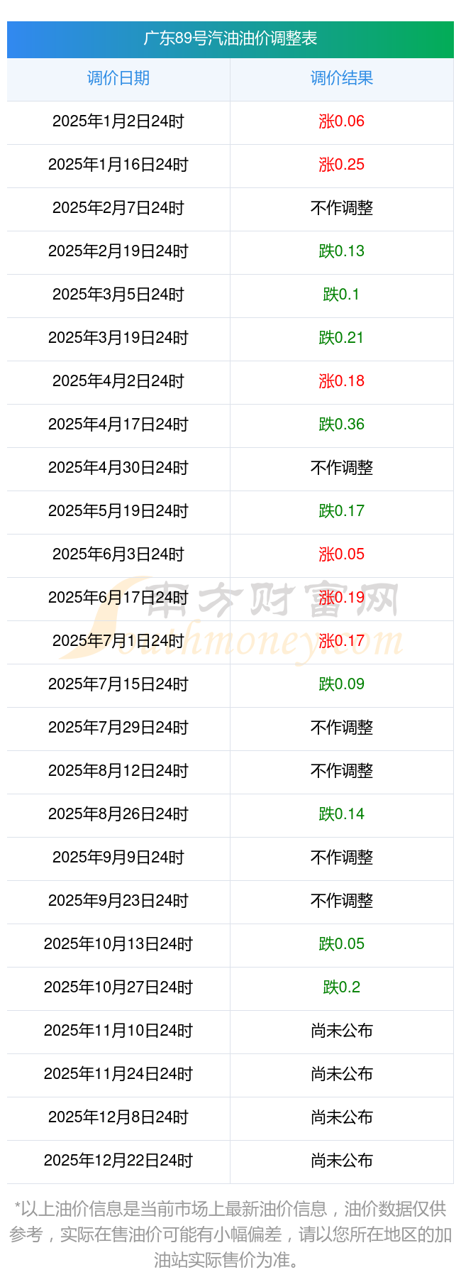2025年廣州油價(jià)調(diào)整日歷時(shí)間表